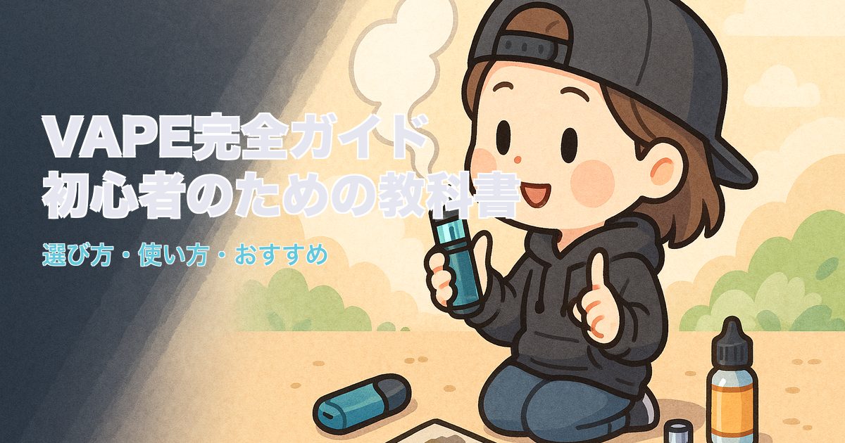 そんな初心者のために、このページではVAPEの基礎知識から選び方、おすすめ製品、リキッド選び、メンテナンスまで全部まとめました。